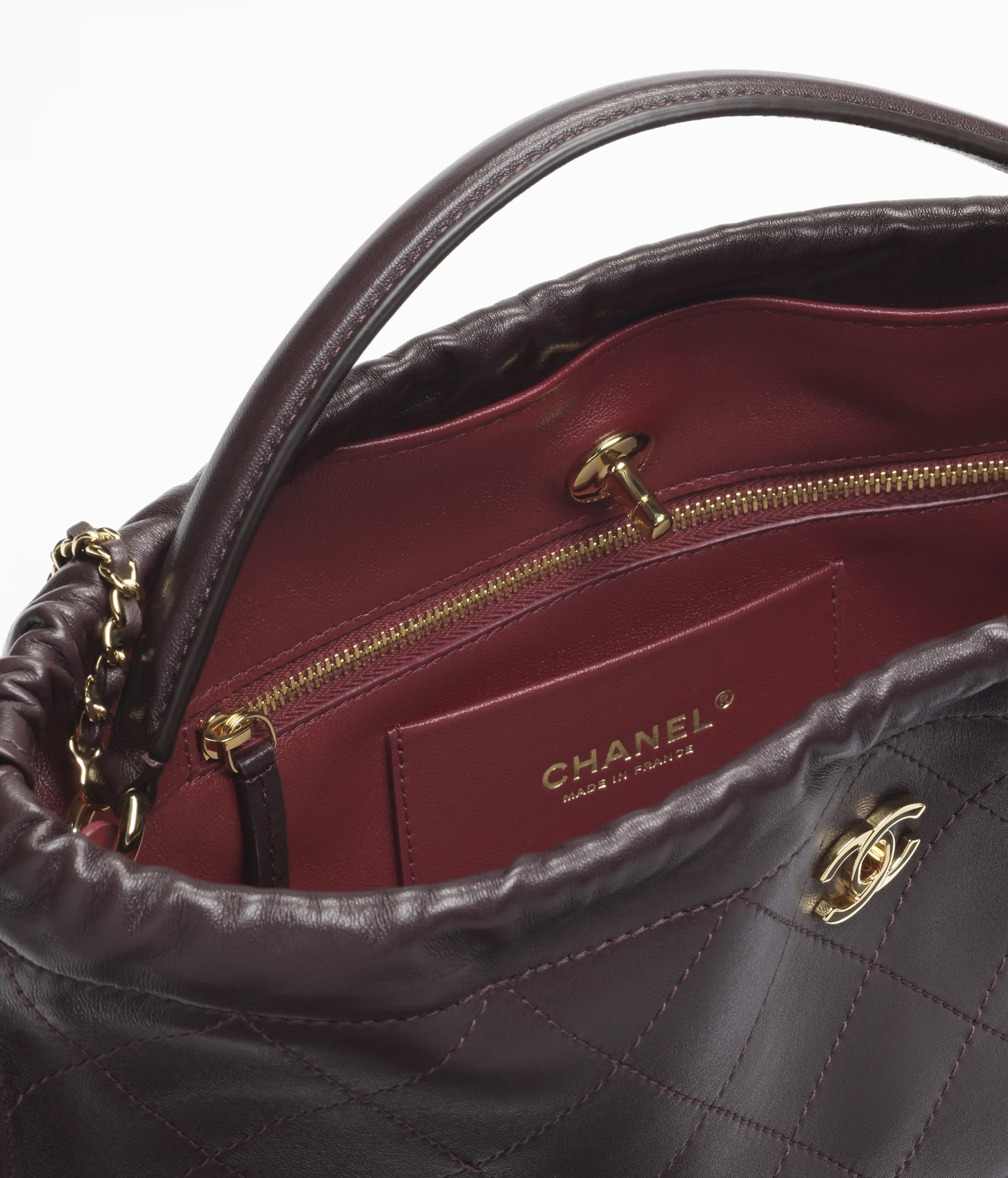 Hobo Bags of the Spring Summer 2026 collection: Large Hobo Bag, lambskin & gold-tone metal, dark brown on the CHANEL official website.