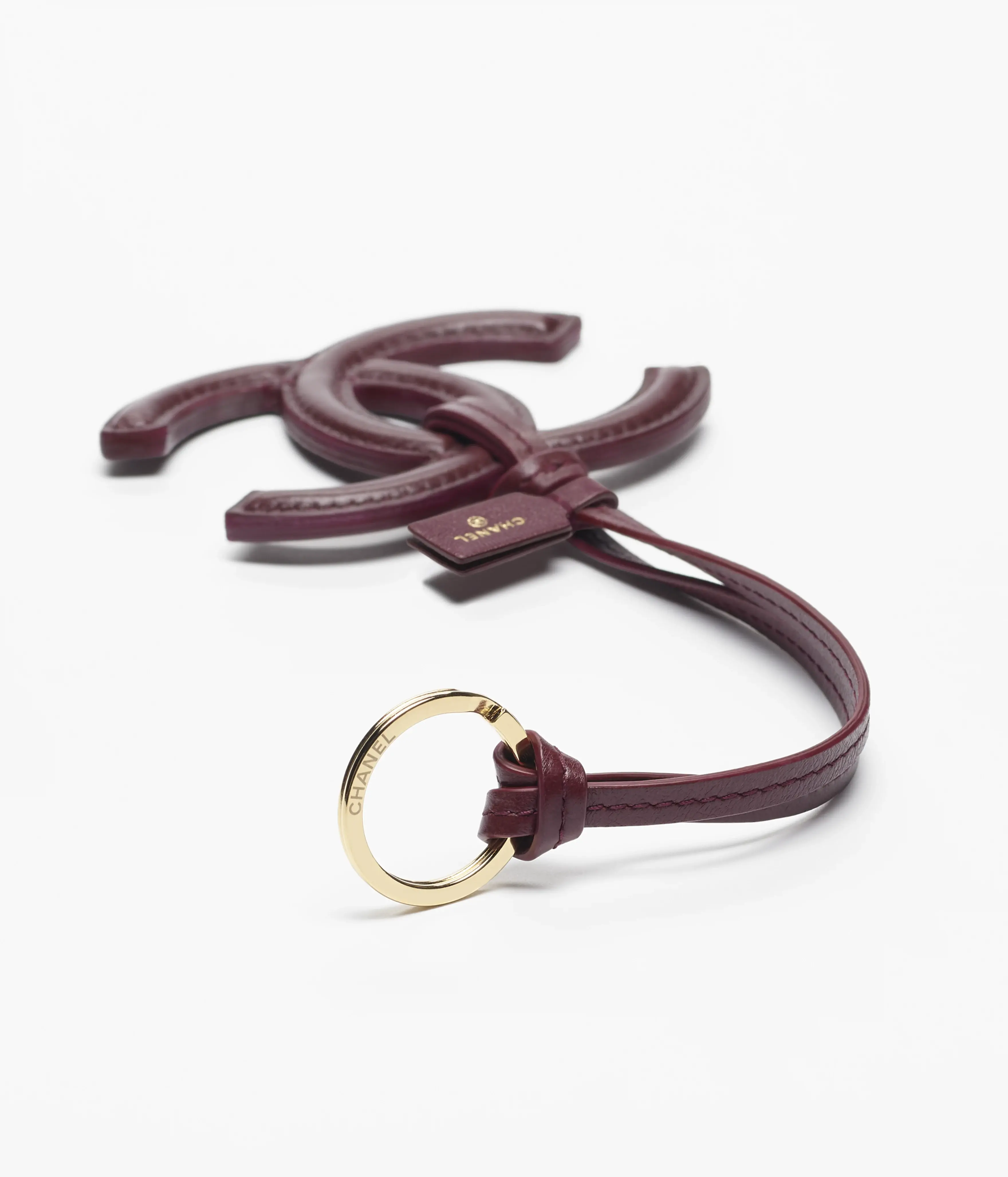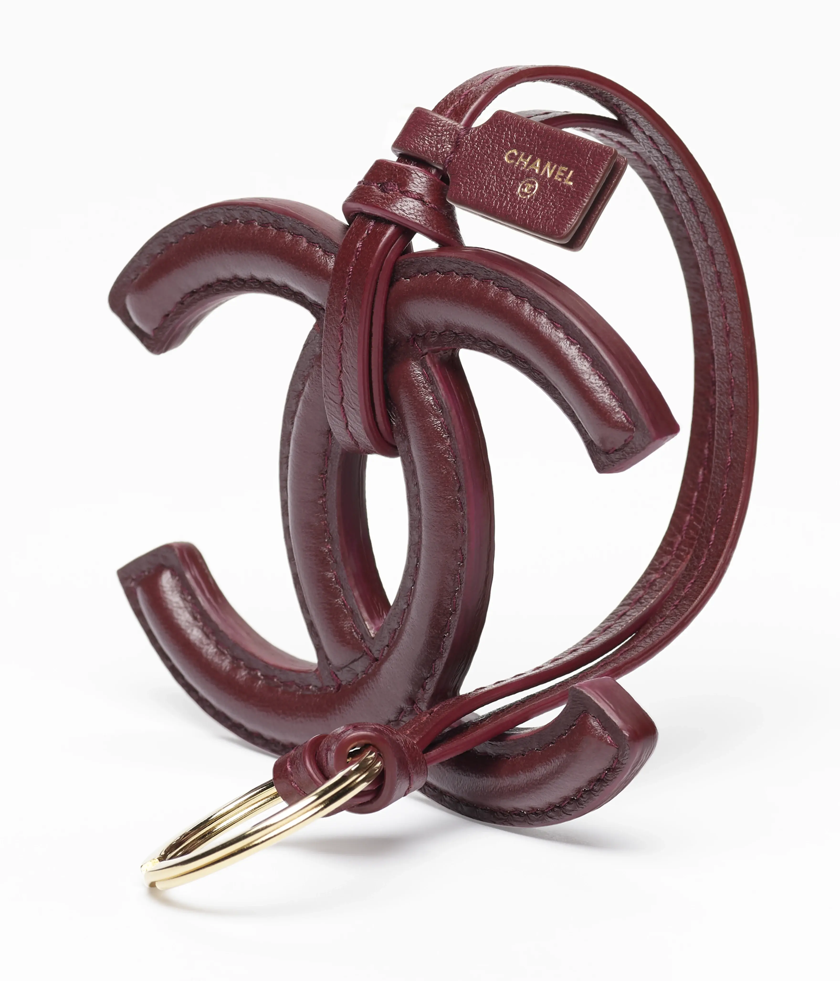 Leather accessories of the Spring Summer 2026 collection: Mini Bag Charm, lambskin & gold-tone metal, dark burgundy on the CHANEL official website.