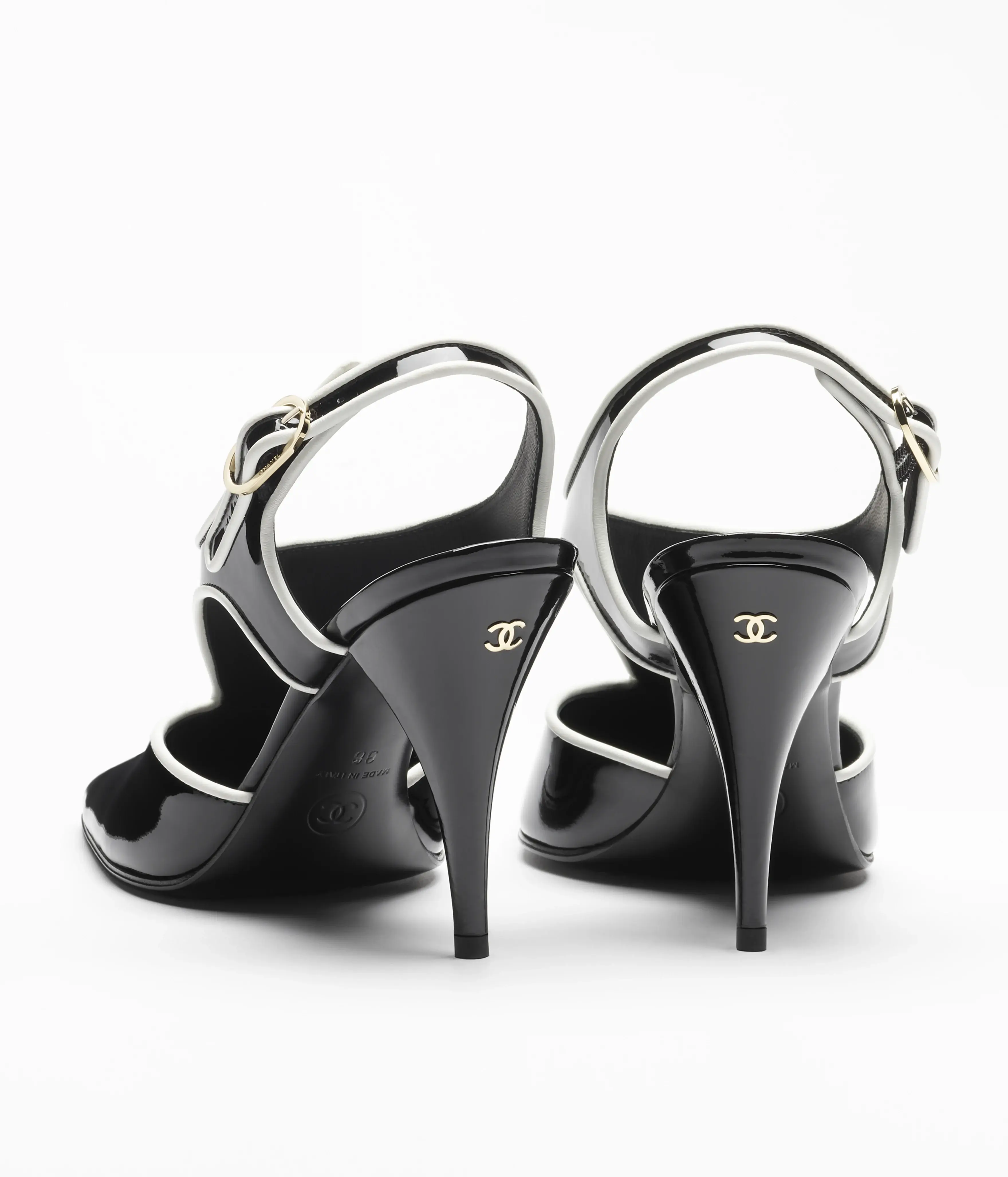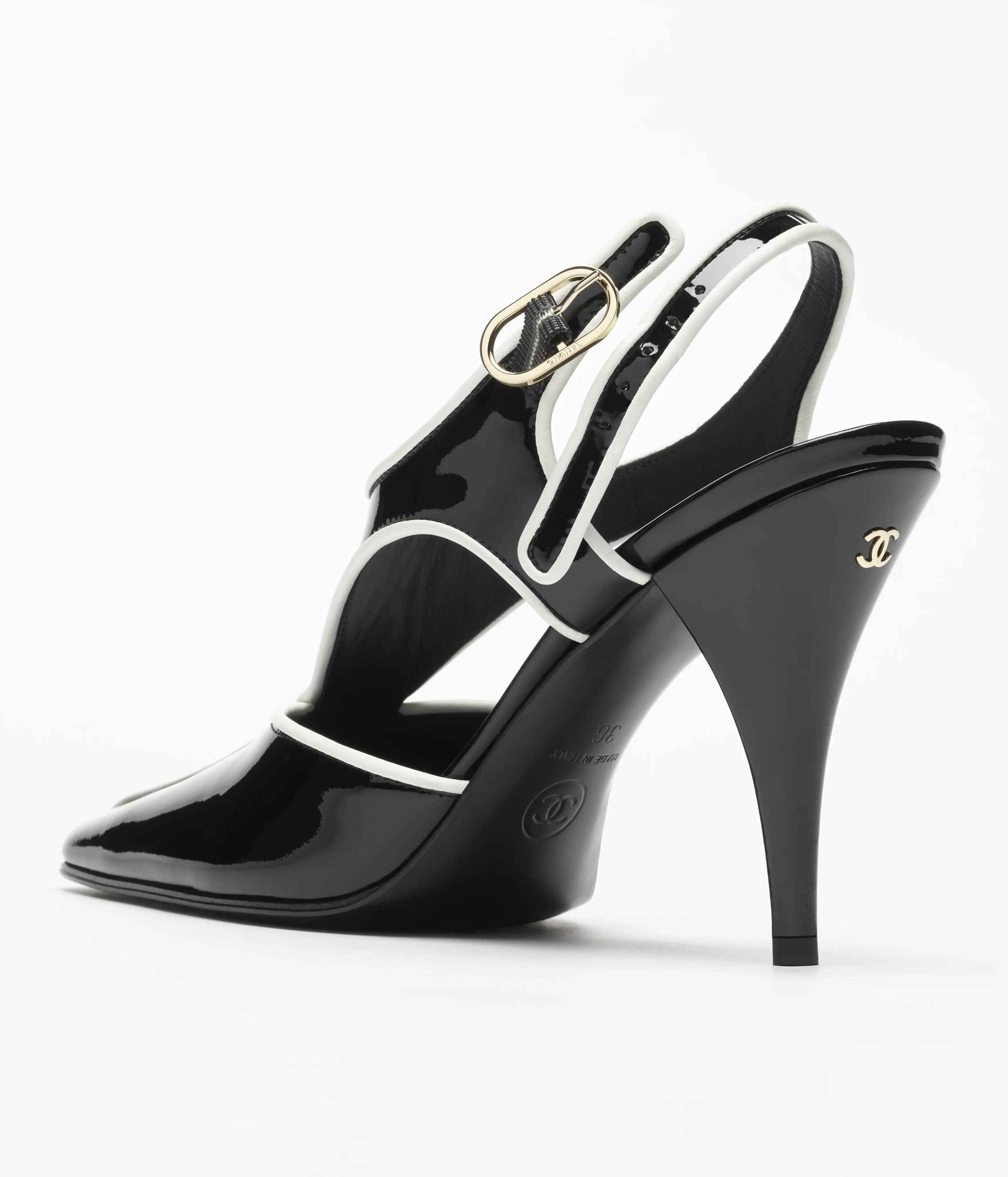 Slingbacks & Pumps of the Spring Summer 2026 collection: Slingbacks, crocodile embossed patent calfskin & lambskin, burgundy & green on the CHANEL official website.